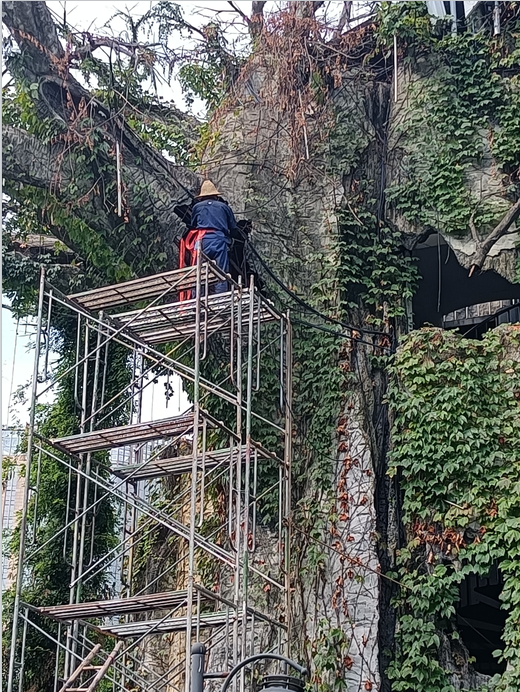 公园景区类的项目时常会出现一些突发事件,百花谷人造景观大树破损,于是工程师傅登高修复;公园沙滩木地板断裂、腐烂,于是工程部进行大面积的更换;绿化供水电箱线路故障,于是工程师傅需将泥土下线路挖掘出来进行排查......